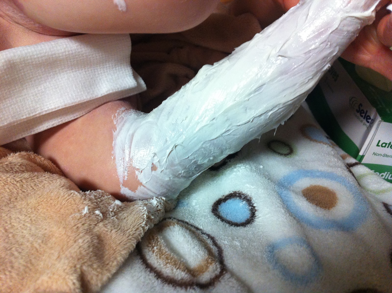 So, your question... right, sorry. Yes, the bandages are for both- to act as a barrier to protect the skin from any type of friction AND to prevent the open sores from being open and at risk for infection. And underneath all of the bandages is that thick layer of aquaphor so that if there is friction, the skin will be slick and protected. And yes, a lot of people would think that if they were "left open" that they might heal better... but we could NEVER pick Tripp up by his bare skin- not even for one second. It would destroy his skin. And when he was little and not so active, we tried to let him "air out" but the sores would either stick to things or dry too much and then blisters would from around the dry scabs. If I could bandage every inch of him- from head down, I would.