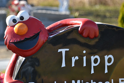 The Elmo is hugging Tripp's "drum," shown by the drum stitching etched along the sides... The quote below his name is the same one I used for his services that Fr. Mark Beard has always told me reminded him of Tripp. It reads, "Preach the gospel at all times; when necessary, use words." Tripp never spoke a word, but showed so many people the true meaning of LOVE. I think the quote speaks of his life perfectly.